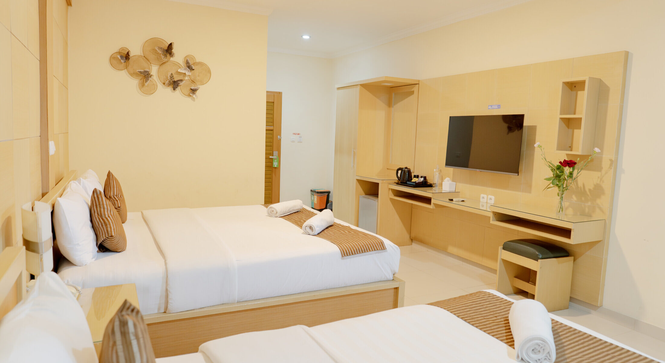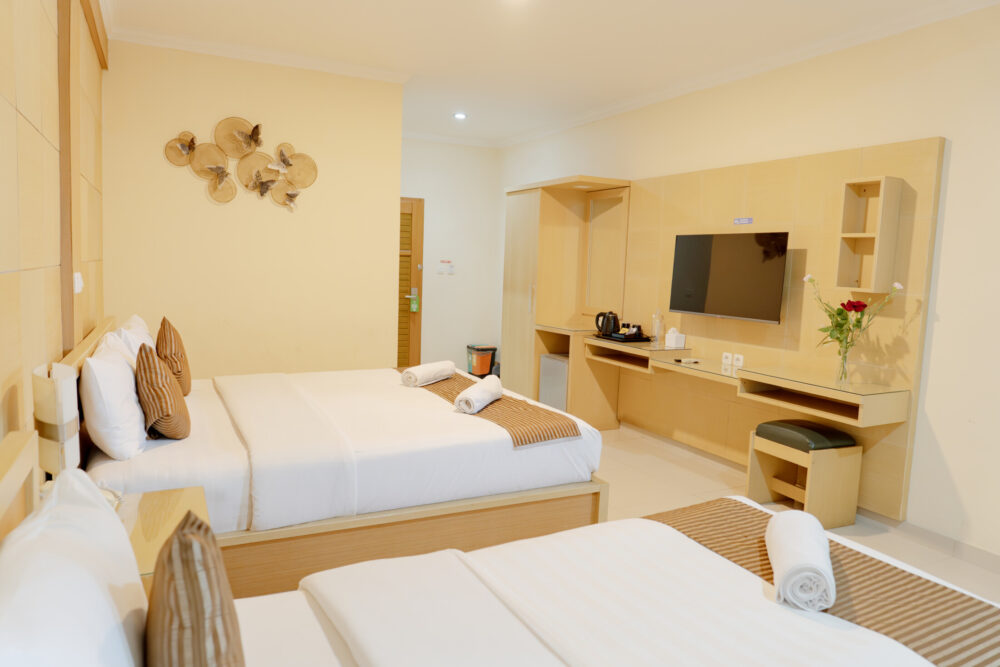 Family Room menawarkan ruang yang luas dengan tempat tidur tambahan untuk kenyamanan seluruh anggota keluarga. Fasilitas lengkap seperti TV, Wi-Fi, meja makan kecil, dan kamar mandi bersih mendukung kenyamanan bersama. Pilihan sempurna untuk liburan keluarga di Sukabumi dengan suasana hangat dan menyenangkan.